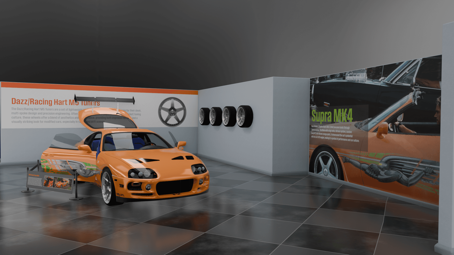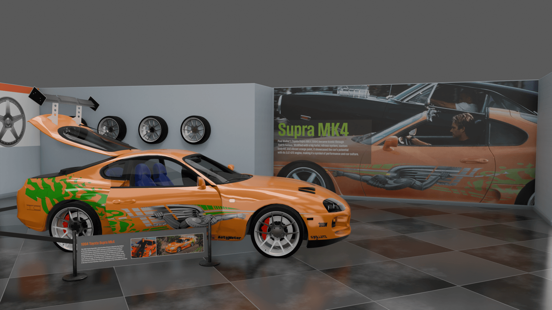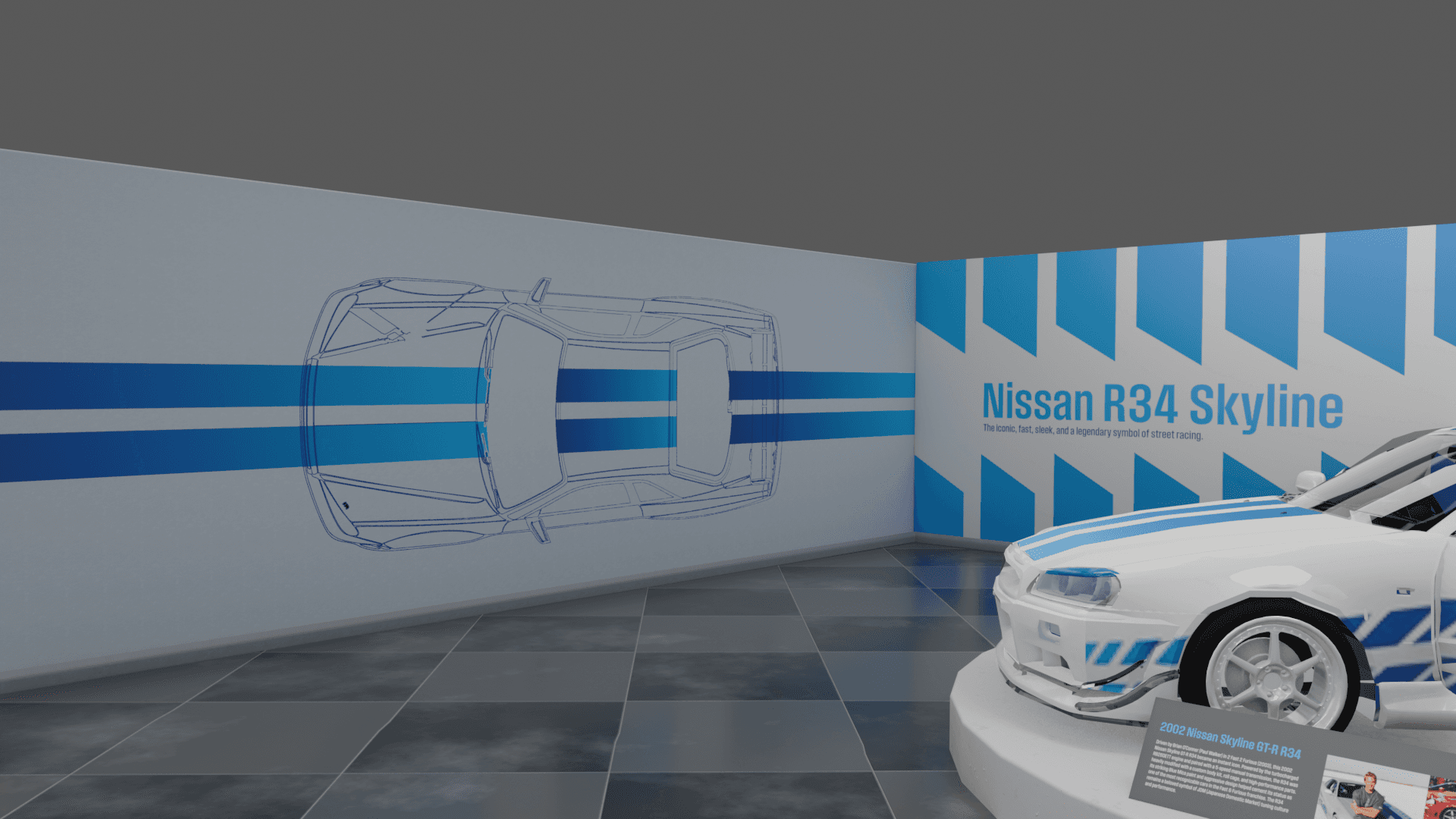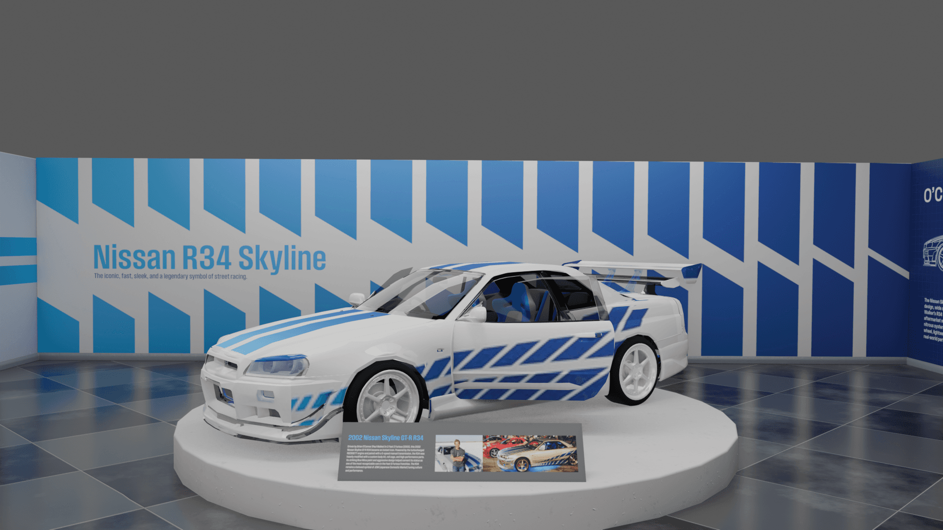 O’Conner’s Garage is a museum experience that explores iconic cars from the Fast & Furious timeline alongside their real-world history. Designed as a temporary exhibit for the Petersen Automotive Museum in Los Angeles, the project highlights the cultural impact and mechanical evolution of these vehicles. With the help of Kenneth Hankish and Oliver Larsen, we developed the layout and accompanying collateral to bring the exhibit to life.